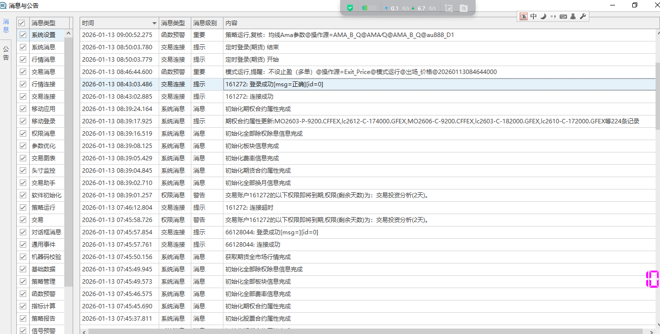 07.45分钟模拟号(66128044)自动登录成功,实盘户(161272)连接超时。08.43分钟我手动连接成功