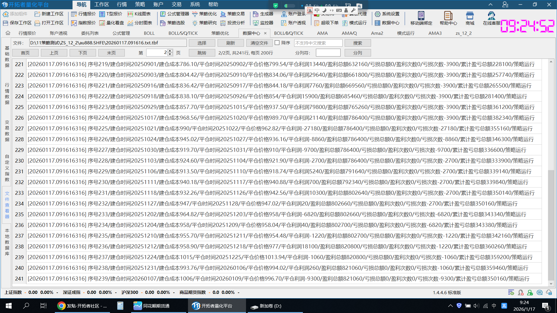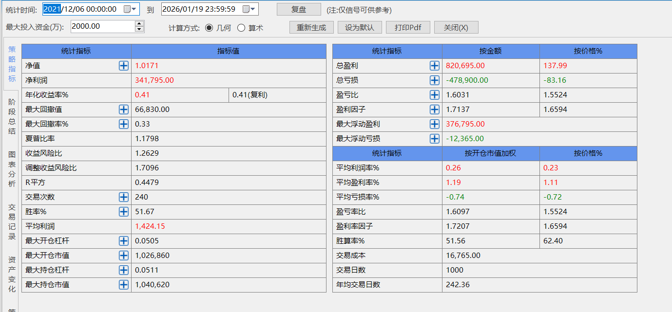 Df_LogFile("序号"+TEXT(I)+"/建仓时间"+TEXT(TradeStats[I][0],6)+"/建仓成本"+TEXT(TradeStats[I][1],2)+"/平仓时间"+TEXT(TradeStats[I][2],6)+"/平仓价格"+TEXT(TradeStats[I][3],2)+"/平仓利润"+TEXT(TradeStats[I][4],2)+"/盈利总额"+TEXT(TradeStats[I][5],2)+"/亏损总额"+TEXT(TradeStats[I][6],2)+"/盈利次数"+TEXT(TradeStats[I][7],0)+"/亏损次数"+TEXT(TradeStats[I][8],0)+"/累计盈亏总额"+TEXT(TradeStats[I][9],2));