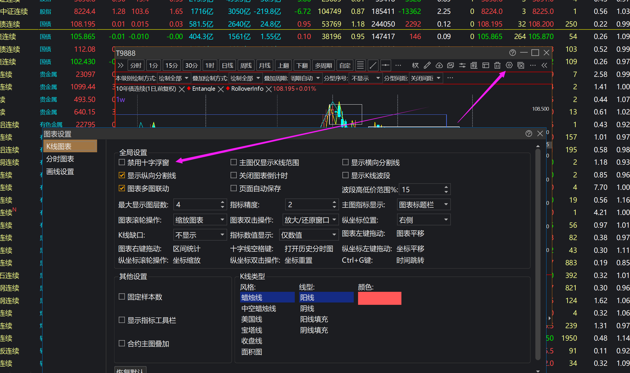 今天升级的新版本,K线图浮动窗口配置默认不显示的设置不见了。以前在设置面板里可以配置默认不显示这个浮动窗口,现在没有这个选项了。这个浮动窗口总是会档住另一个周期的K线图。
