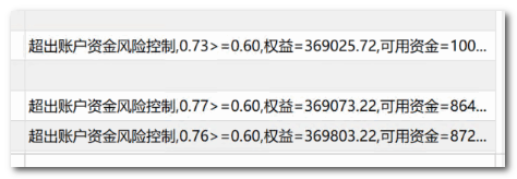 如上图所示,策略不停出信号想开仓,但被风控限制了,于是在如下图的监控器里就出现很多不同步的记录