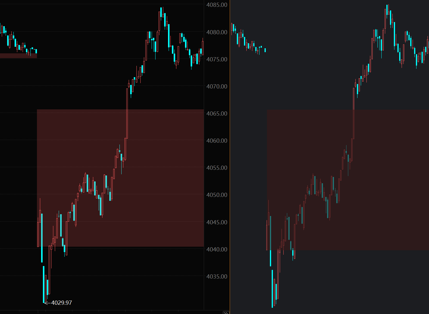 下边左边是东方财富客户端的图,右边是tbquant3的fillRgn函数画出来的。差别在于k线能否清晰的显示。