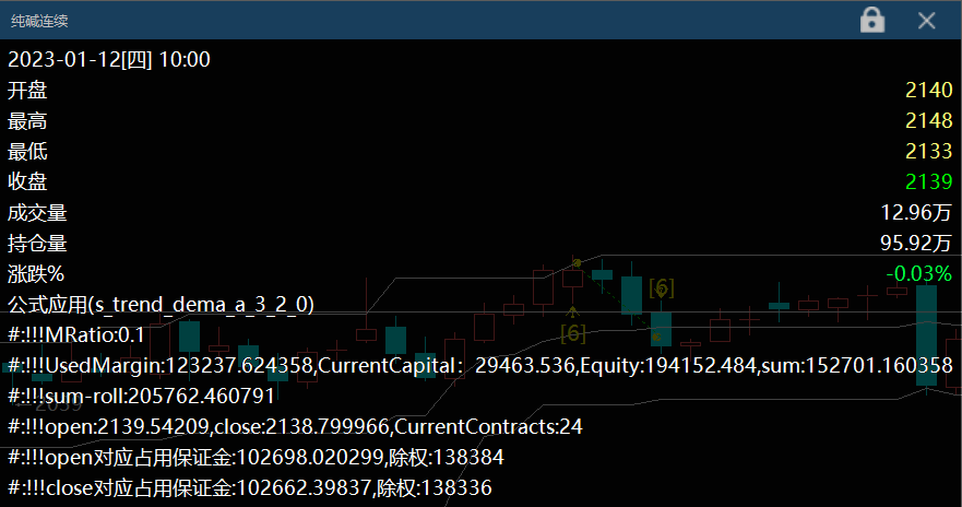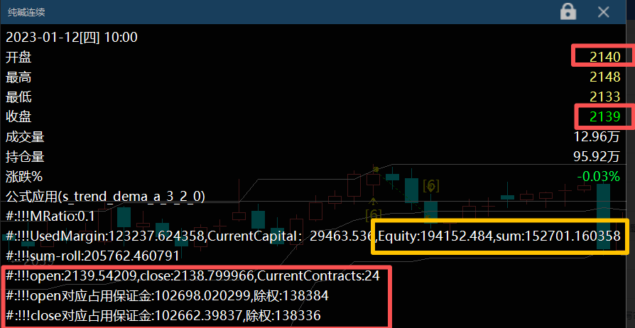 Commentary("!!!open对应占用保证金:"+Text(open*ContractUnit * BigPointValue * MRatio*CurrentContracts)+",除权:"+Text(open/rollover*ContractUnit * BigPointValue * MRatio*CurrentContracts));
