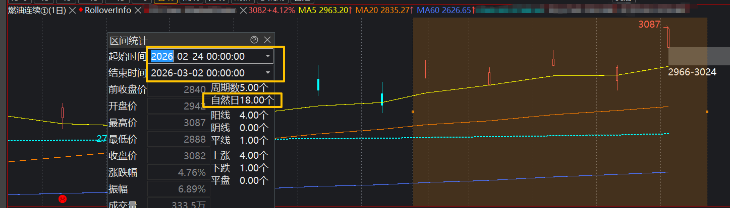 燃油2/24-3/2,没有18天,2月24日里没有夜盘