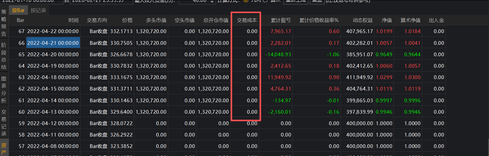 设置成0也不影响,上面的不复权数据也是有手续费和滑点的能对上,还麻烦看下是什么问题
