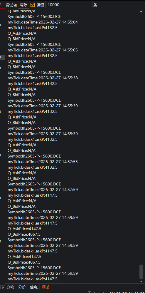 确定是第三种情况无疑,因为获取到的tick时间是前几天的,所以不想用tick数据了,因为确实获取不到,想另辟蹊径但又不知道还有哪些方法,TB内部肯定是有数据的,不知道是否提供了相应的方法,想请教一下