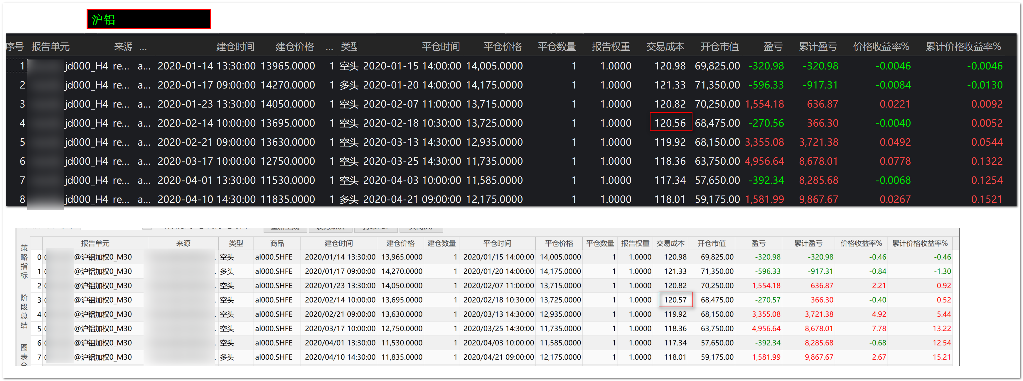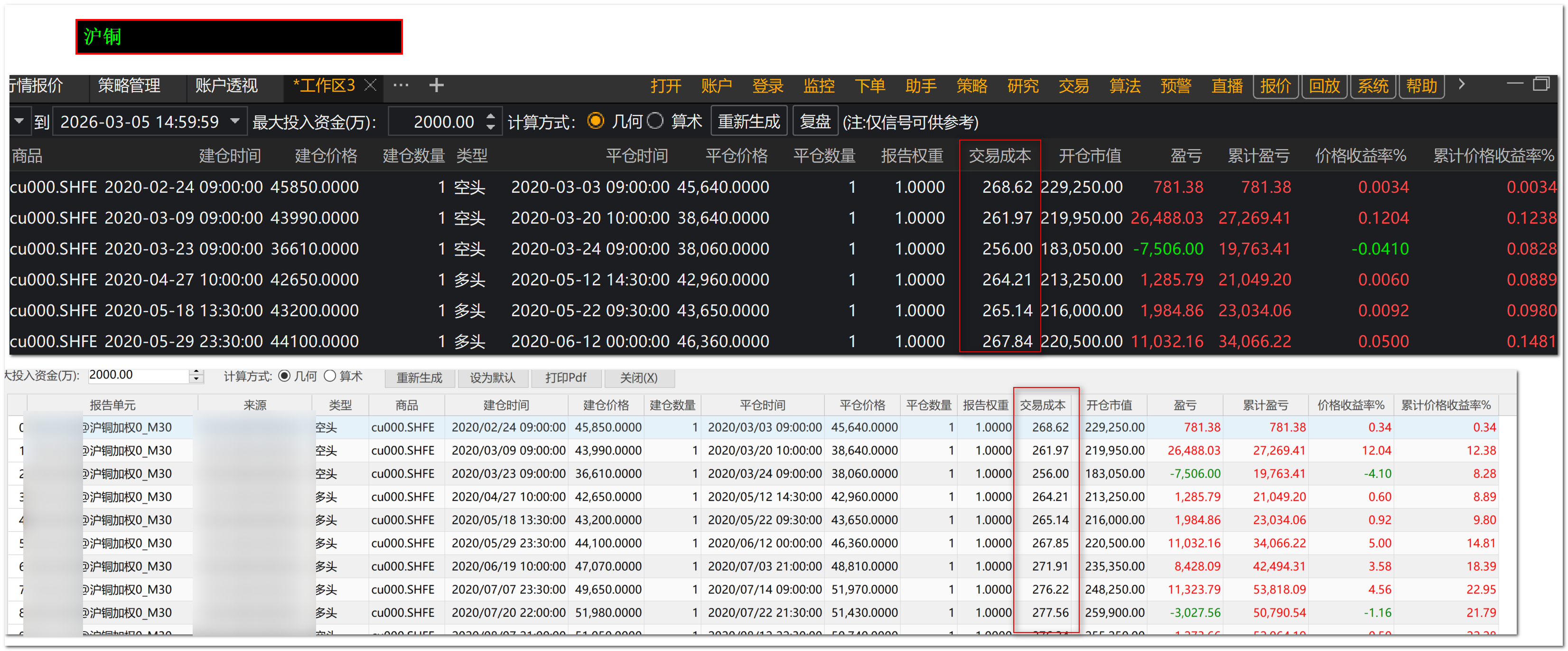 但是我发现沪铜为例的策略报告里的 交易成本,TBQ和TBQ3里是一模一样的,回测报告也是一模一样的,完美匹配