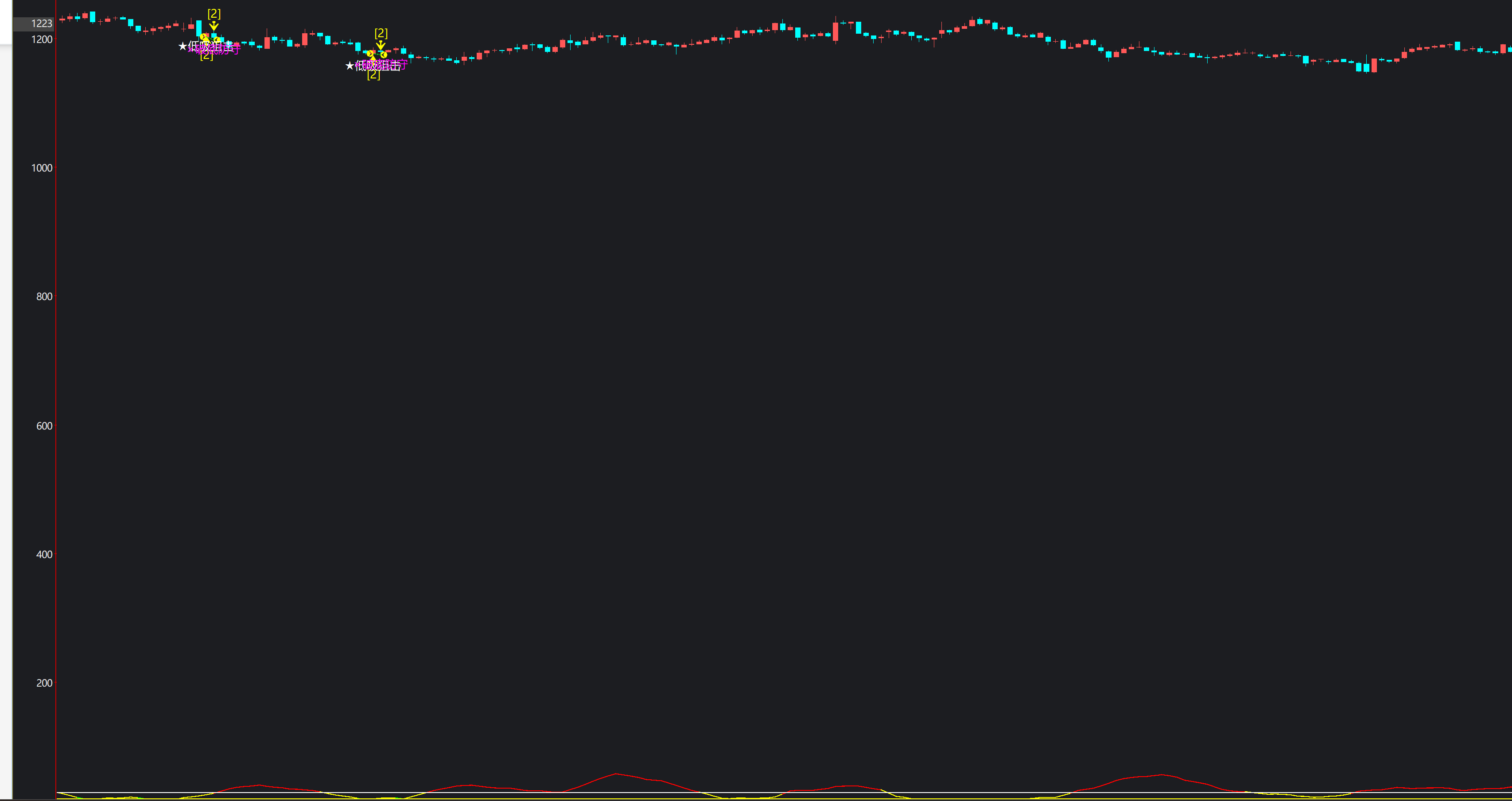 添加技术指标后,整个图标被压缩,技术指标范围只是在0-100 。