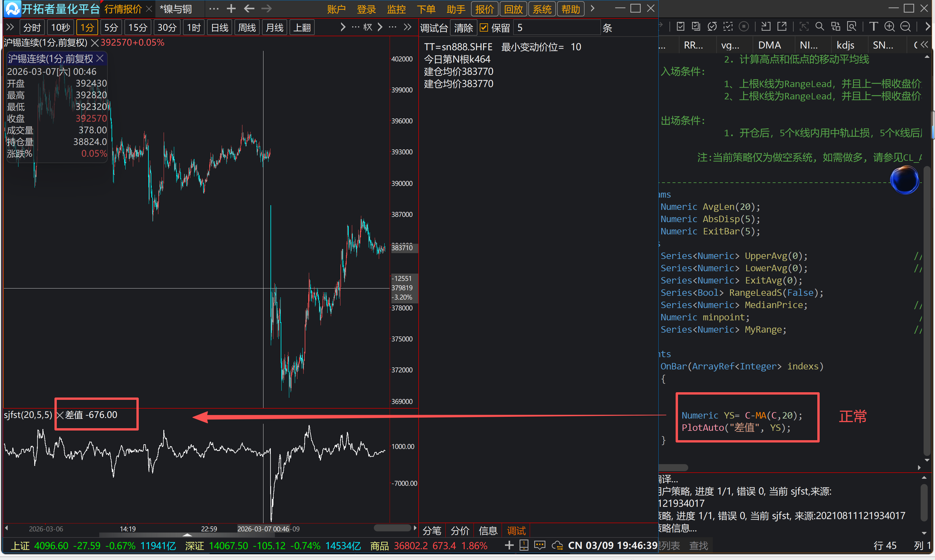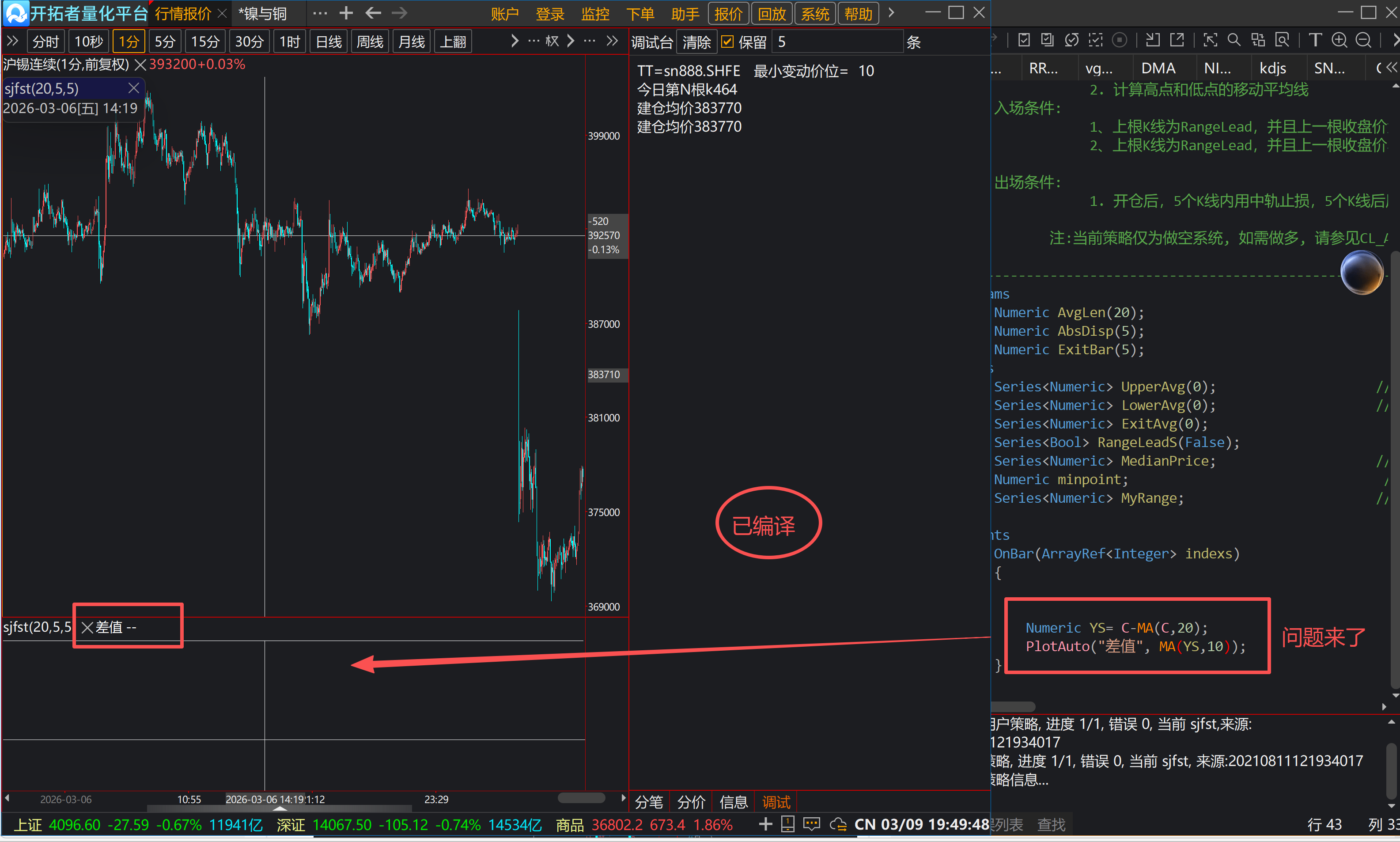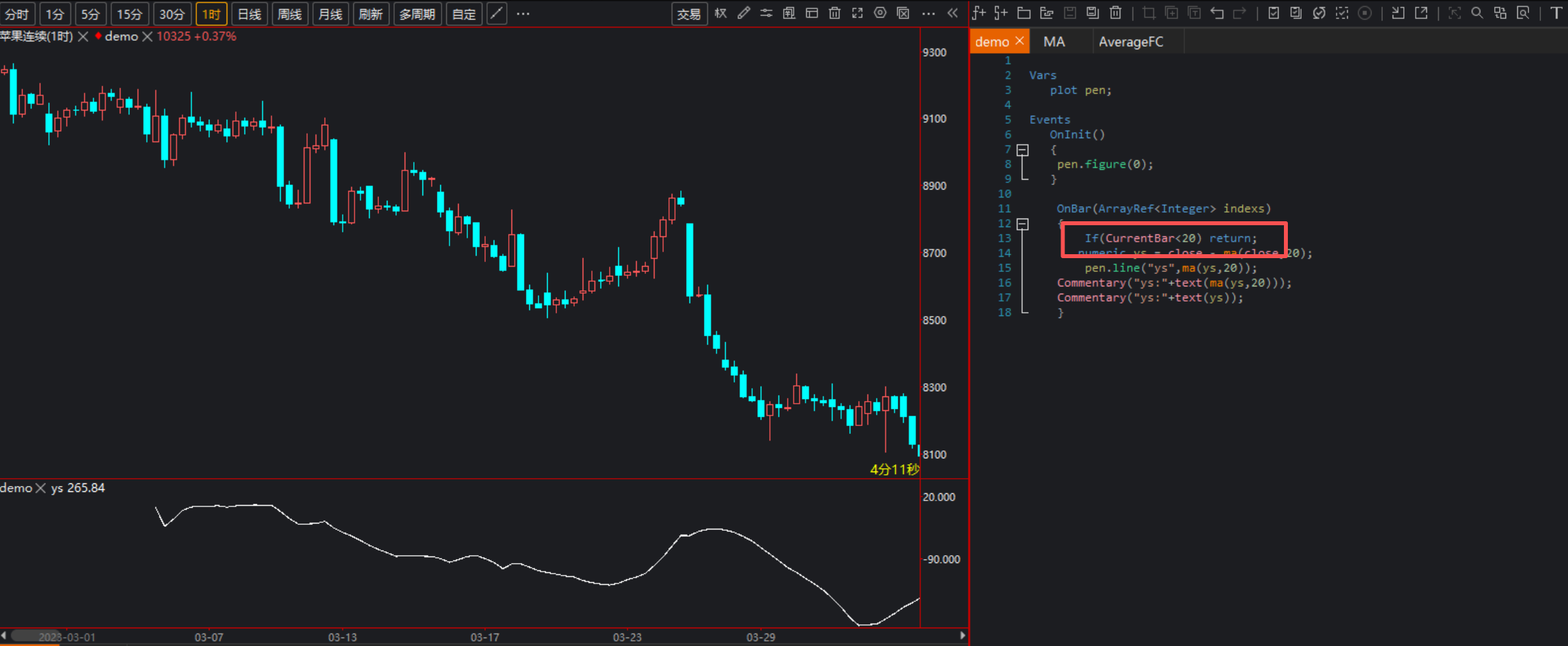 If(CurrentBar>=19) PlotAuto("差值",ma(YS,10));可能函数过滤无效值 像是 IIF(Price>0, Price, Null) 但是用Average 函数就没问题