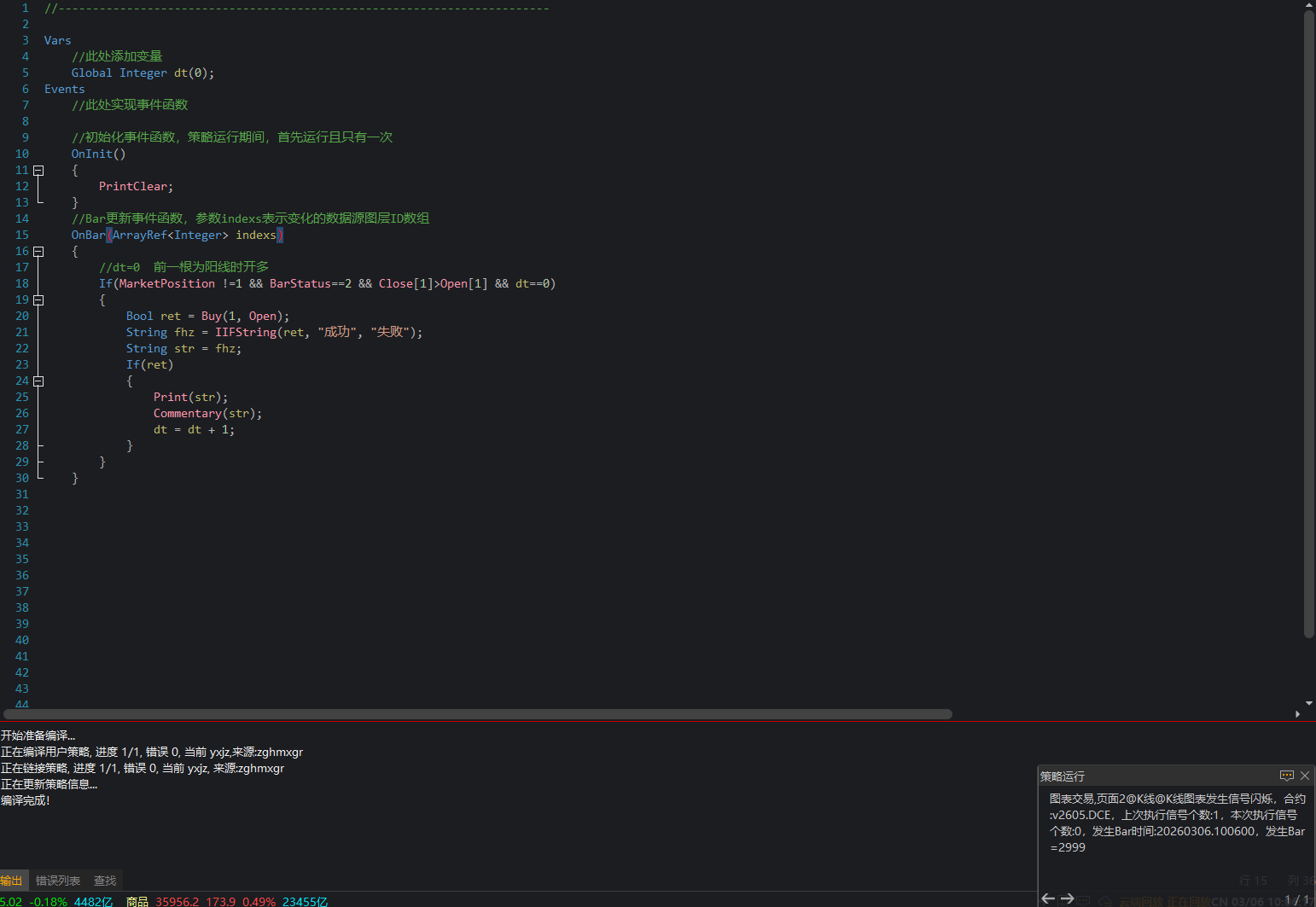 最近在调试程序,写了一个简单的开仓策略。