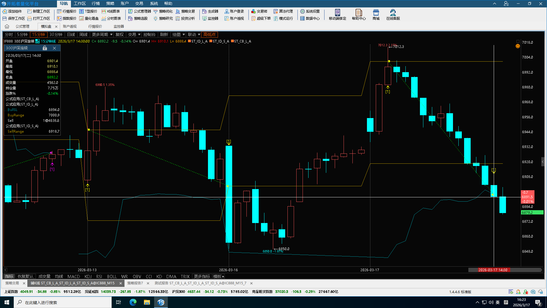在模拟盘运行自动交易时,策略周期是15分钟,股指我开了开平互转,早上10点多开多了一手IF,下午2:35分打到了止损线,并且平仓信号也实时出来了,此时开了开平互转日内应该直接开空仓的,但是没有发送委托信号,直到2:58分才开触发了开平互转,开了一手空单,我是阿里云的服务器,也检查了网路没有问题。TB的消息列表也没有任何异常提示。请问这是什么原因呢?