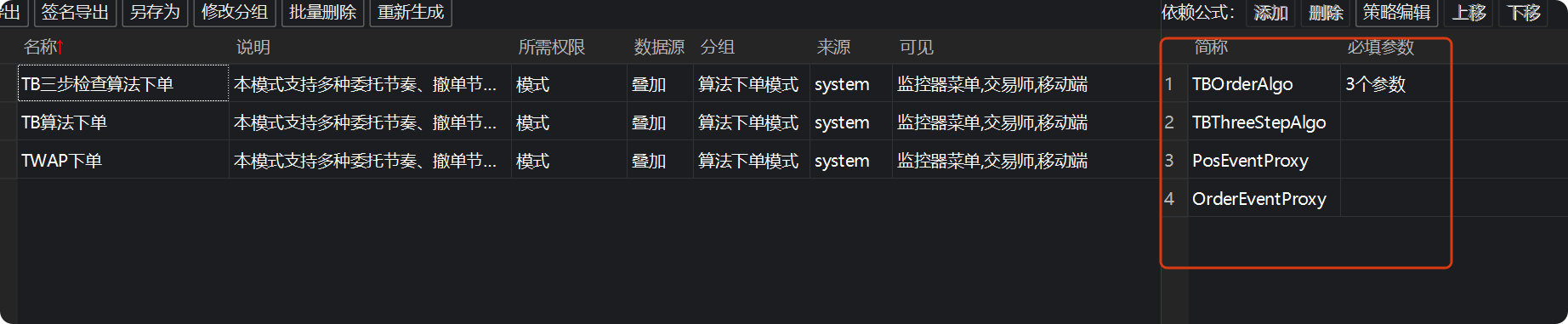看了关于TB算法代理的帖子和视频,想知道如何将TB自带的算法下单模式如TB三步检查下单,TB算法下单和TWAP下单应用于自己编写的策略,以下图的【TB三步检查算法下单为例】