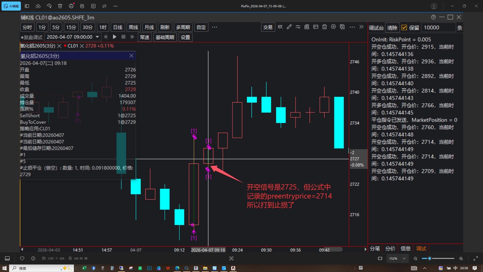 If(OpenPrice_0915 < OpenPrice_0900) // 当前价格低于开盘价,做空,这个条件永远成立