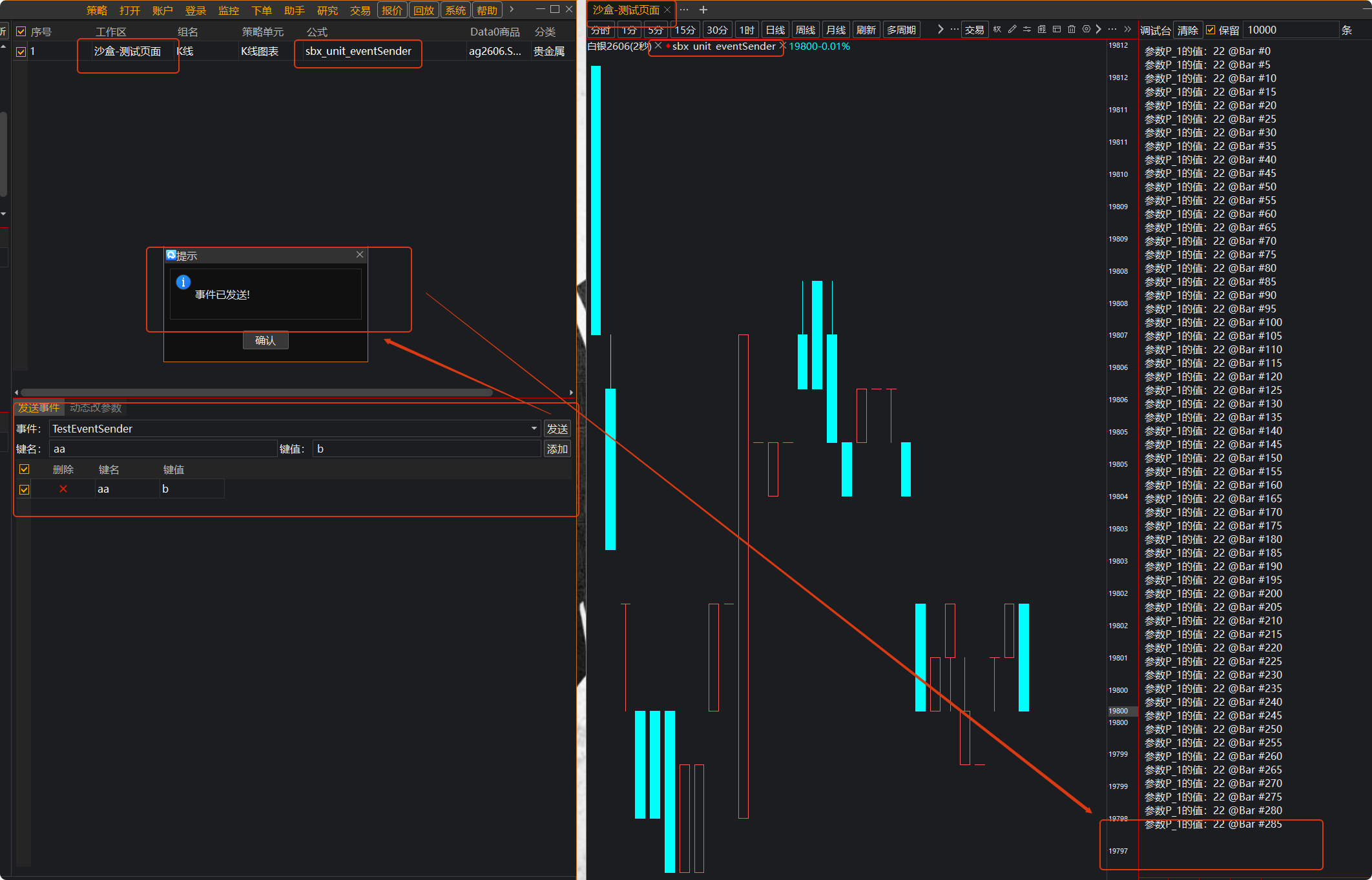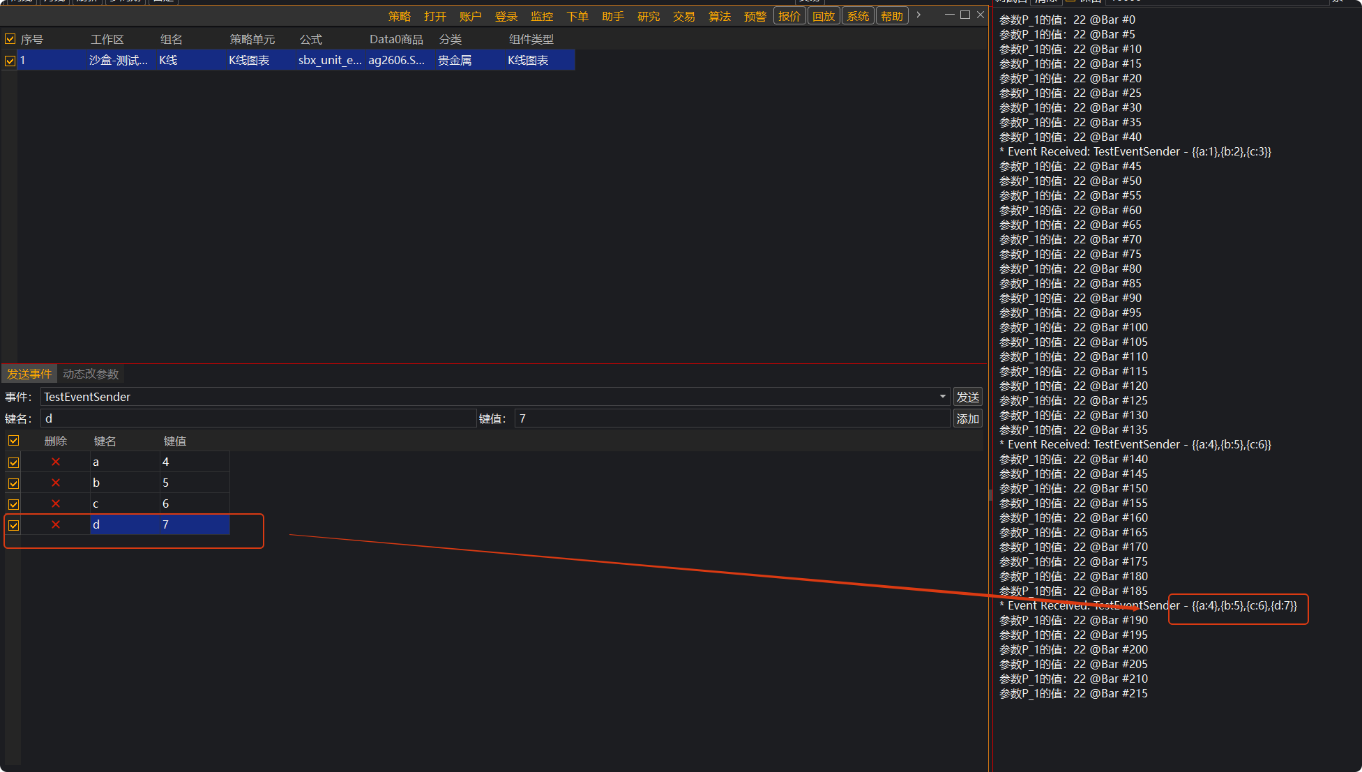 }运行在图表中,经测试注释掉的PublishEvent代码是可以工作的,发布的事件参数会被OnEvent接收并打印