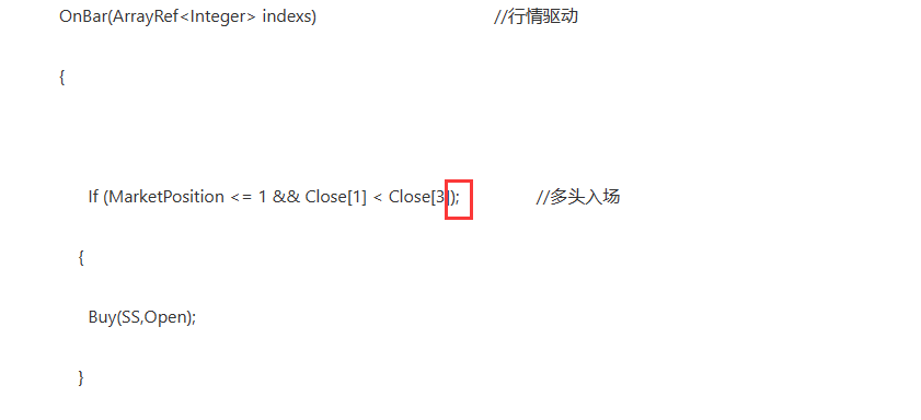 If (MarketPosition <= 1 && Close[1] < Close[3]); //多头入场