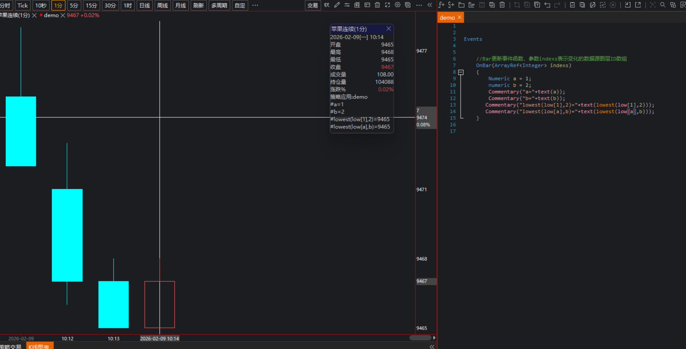 所以,我想验证 highest和lowest函数在计算的时候,到底是取的哪几根bar上的值,但是还没想出来该怎么print